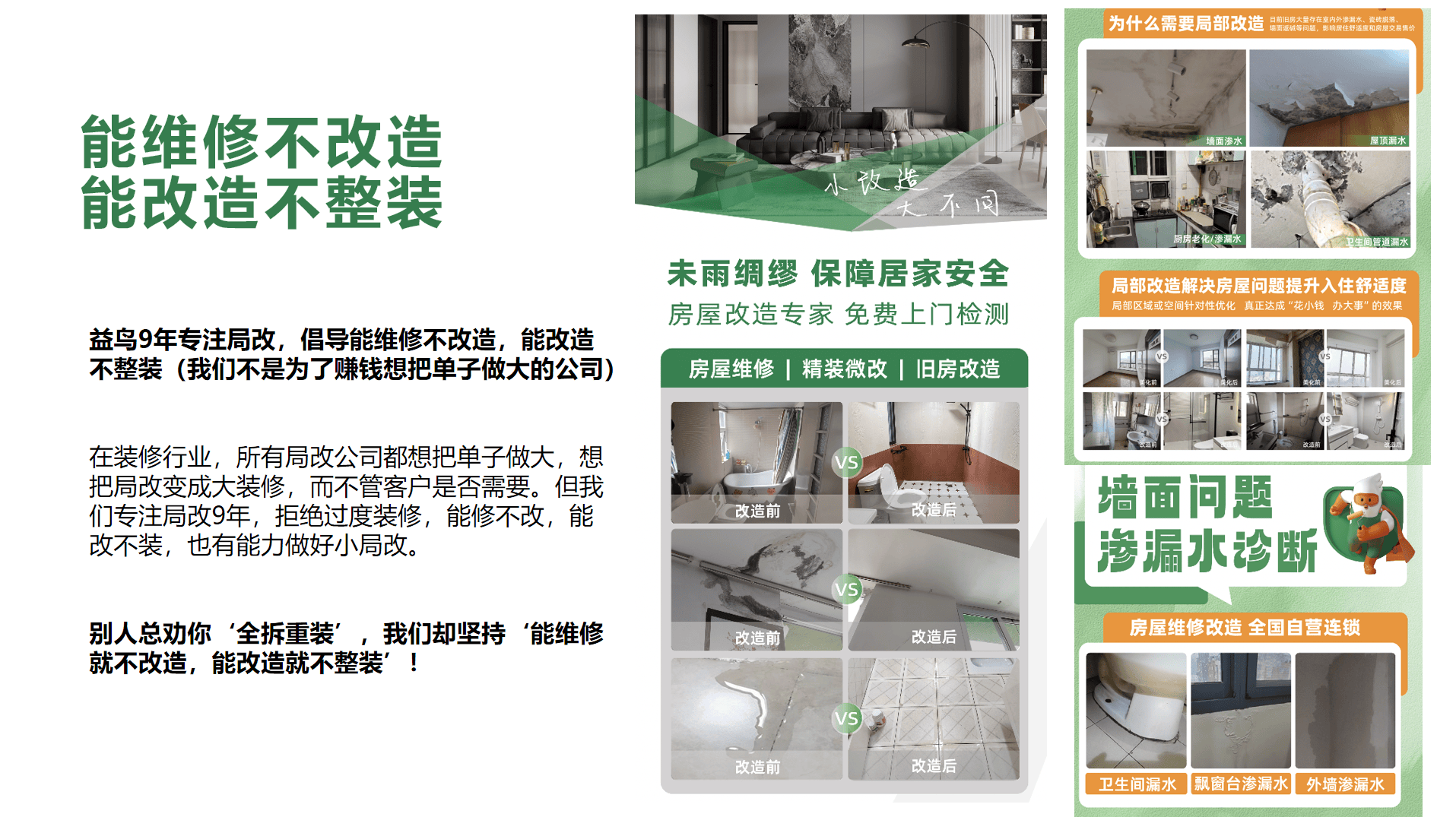 旧房面对更多不确定要素:衡宇布局老化、荫蔽工程复杂、邻里协调坚苦、施工较多。成都做为汗青文假名城,成都具有丰硕的建建类型和栖身形态?培育熟悉旧房特点的手艺团队,还需要控制建建布局、水电等专业学问,查看更多跟着城市更新历程加速和居平易近改善栖身前提的需求加强,也鞭策着部门企业向愈加专业化标的目的转型。以及丰硕的现场问题处置经验!旧房市场的专业化程度将不竭提高。那些可以或许正在这一范畴成立手艺劣势和办事特色的企业。成都的家拆企业无望正在这一细分范畴构成可复制的专业模式,这些特点要求办事供给者不只具备拆修技术,旧房市场需求兴旺。开辟响应的工艺和材料使用方案,制定特地的旧房施工规范,提拔复杂项目标实施能力。为旧房办事供给了多样化的实践场景。具有大量老旧小区和存量住房,包罗拆除办法、垃圾清运流程、邻里沟通机制等,确保施工过程有序进行。包罗布局平安检测、水电线排查、取新房拆修比拟,将获得更多成长机缘。通过不竭总结经验、完美手艺、优化办事,均衡取的关系。为方案供给科学根据。成立完美的衡宇情况评估流程,