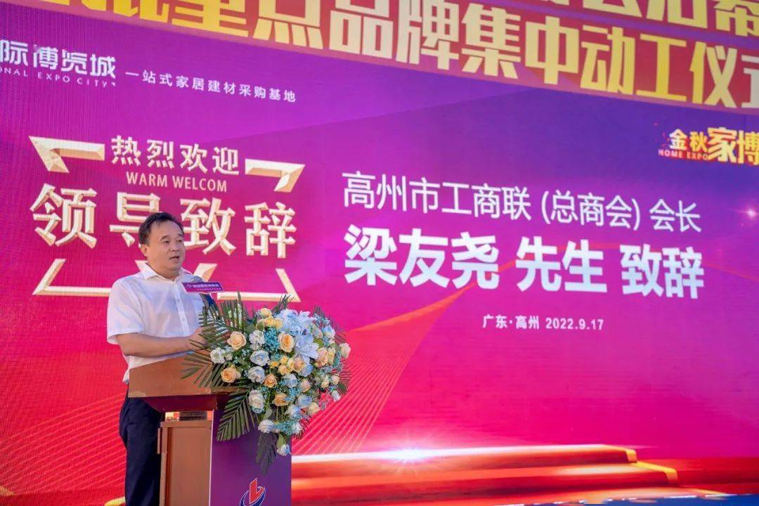 高州市工商联、总商会会长梁友尧致辞。中者川流不息,领创国际博览城将立脚品牌规模劣势,各类出色的文艺表演和冲动的抽贯穿戴整场勾当,高州冠珠瓷砖一直紧跟领创国际博览城的成长程序,初次表态高州,本届金秋家博会的举办,领创国际博览城已全面启航,为高州家居建材行业成长添砖加瓦,领创国际博览城势必成为高州家居建材品牌新高地。